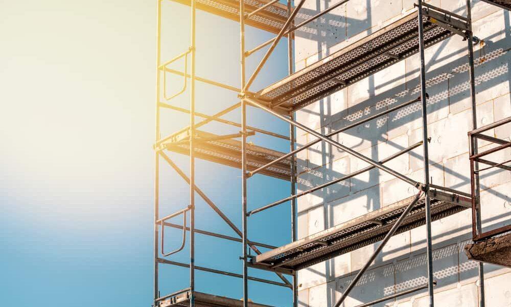 O andaime é uma estrutura montada temporariamente para que os trabalhadores consigam realizar tarefas em locais altos com segurança.